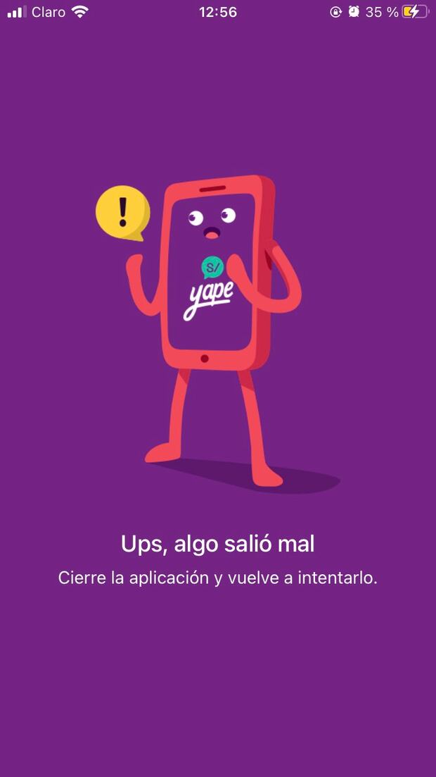 “Por el momento esta acción no está disponible, pero puedes seguir usando Yape mientras lo resolvemos”, se lee en la advertencia. “Ups, algo salió mal. Cierra la aplicación y vuelve a intentarlo”, se lee en otro mensaje.
