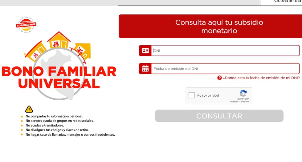 El ministerio de Desarrollo e Inclusión Social informó que en la plataforma bonouniversalfamiliar.pe, las personas podrán saber si acceden al bono.