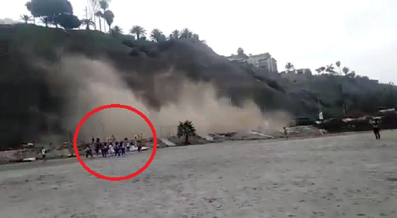 Tras poner en buen recaudo a su hijo, el hombre con cámara en mano -como se puede ver en las imágenes- se acercó y logró captar que durante el nuevo derrumbe en la Costa Verde, un grupo de niños escolares se encontraban por la zona.