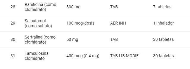 La lista está compuesta por 31 medicamentos para males respiratorios, diabetes, hipertensión, salud mental, infecciones por hongos, entre otros.