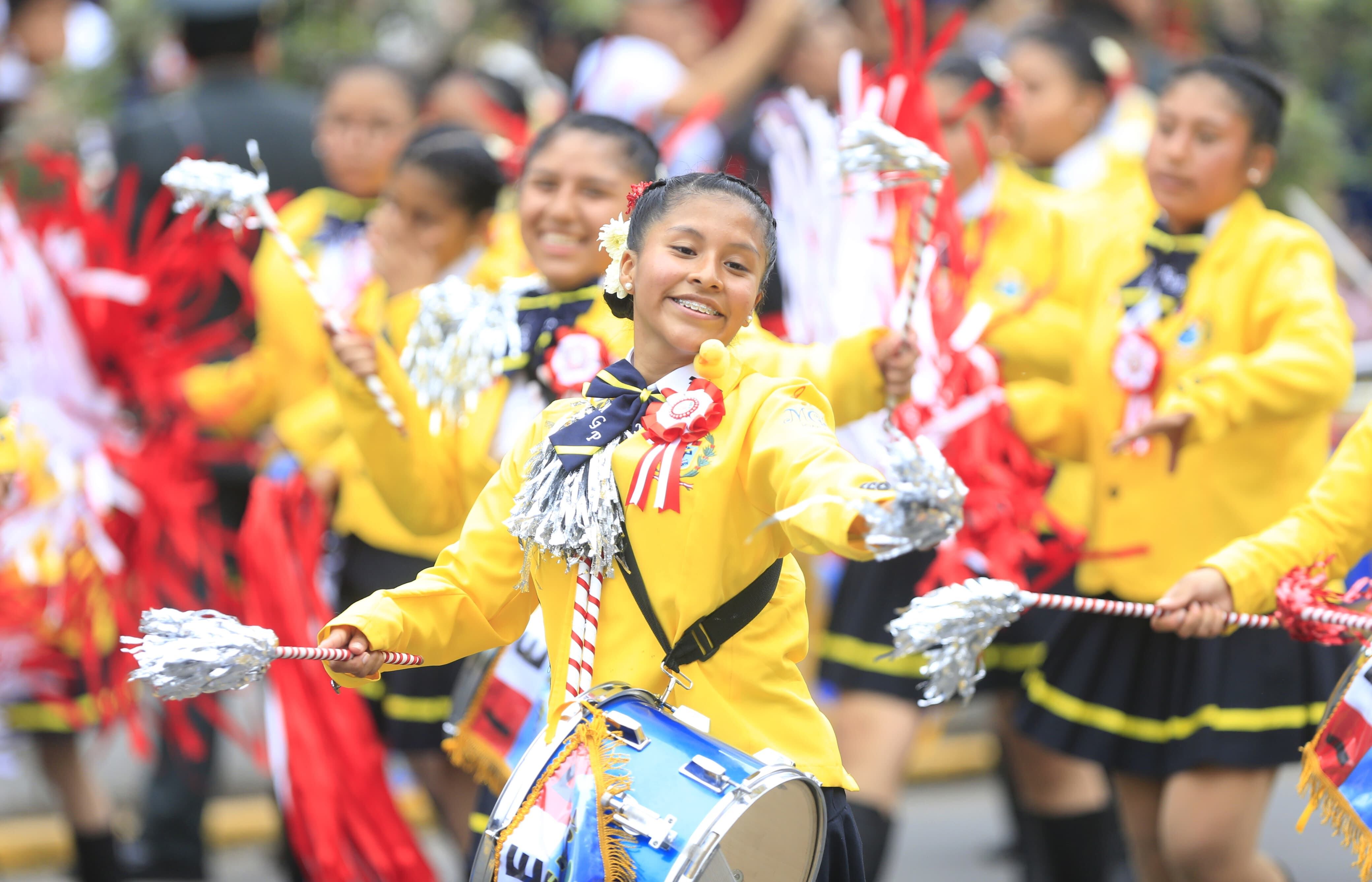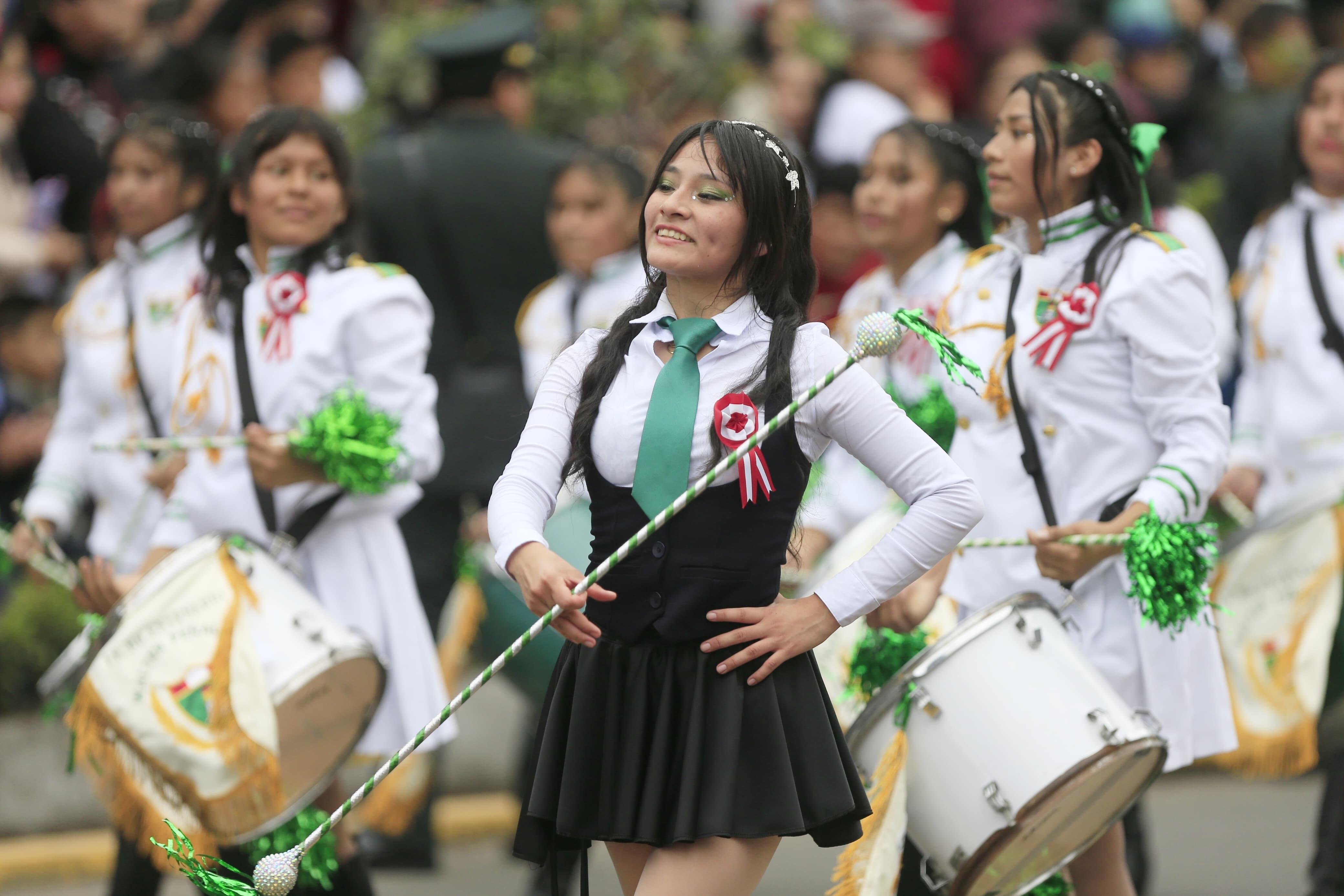 Al ritmo de la marcha militar “Los peruanos pasan”, se hicieron presente en la avenida Brasil las escoltas de doce colegios emblemáticos proceden de Amazonas, Ayacucho, Junín, Puno, Apurímac, Lambayeque, Tumbes, Ucayali, Lima y el Callao.