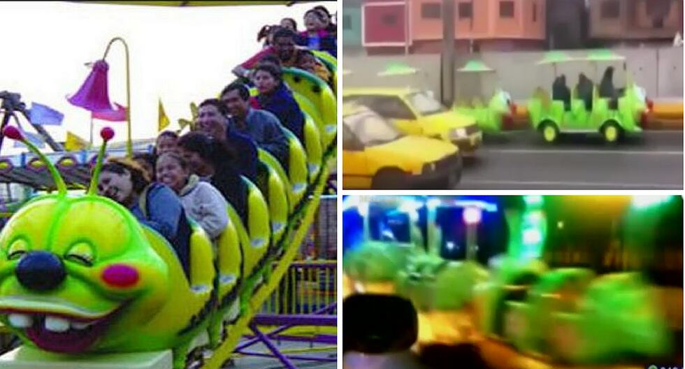 El popular juego mecánico "gusanito" circulaba con toda frescura por la Panamericana Norte y no solo eso, lo hacía con toda velocidad. Tremenda imprudencia, pero es un hecho muy gracioso y que vale la pena compartir. Sin embargo, no llevaba a un pasajero, aunque se logra visualizar a un conductor.