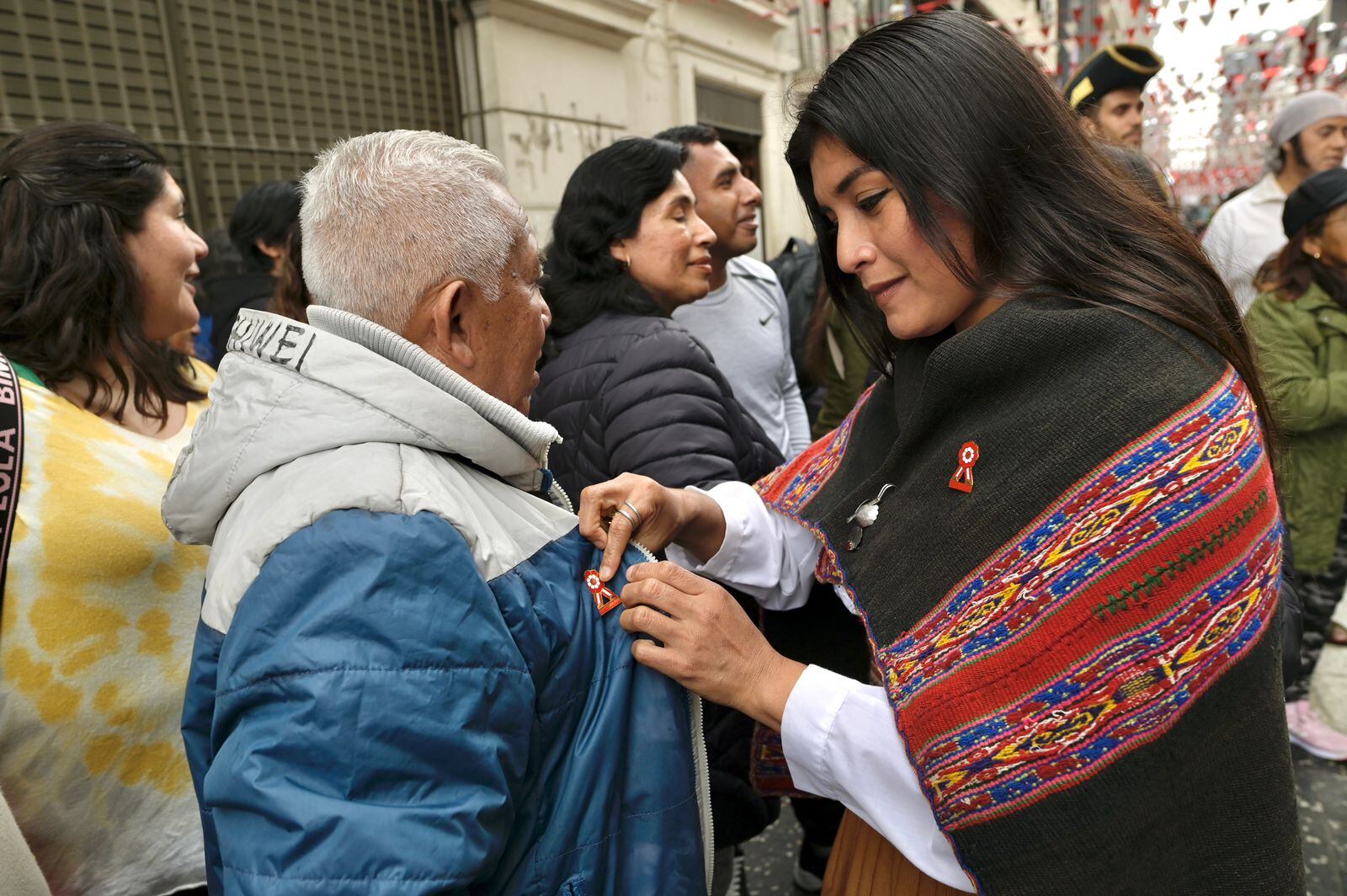 Desde tempranas horas, los transeúntes fueron sorprendidos por la presencia de diez personajes históricos, quienes repartieron escarapelas e interactuaron con adultos y niños por igual para animarlos a unirse a esta celebración del bicentenario.