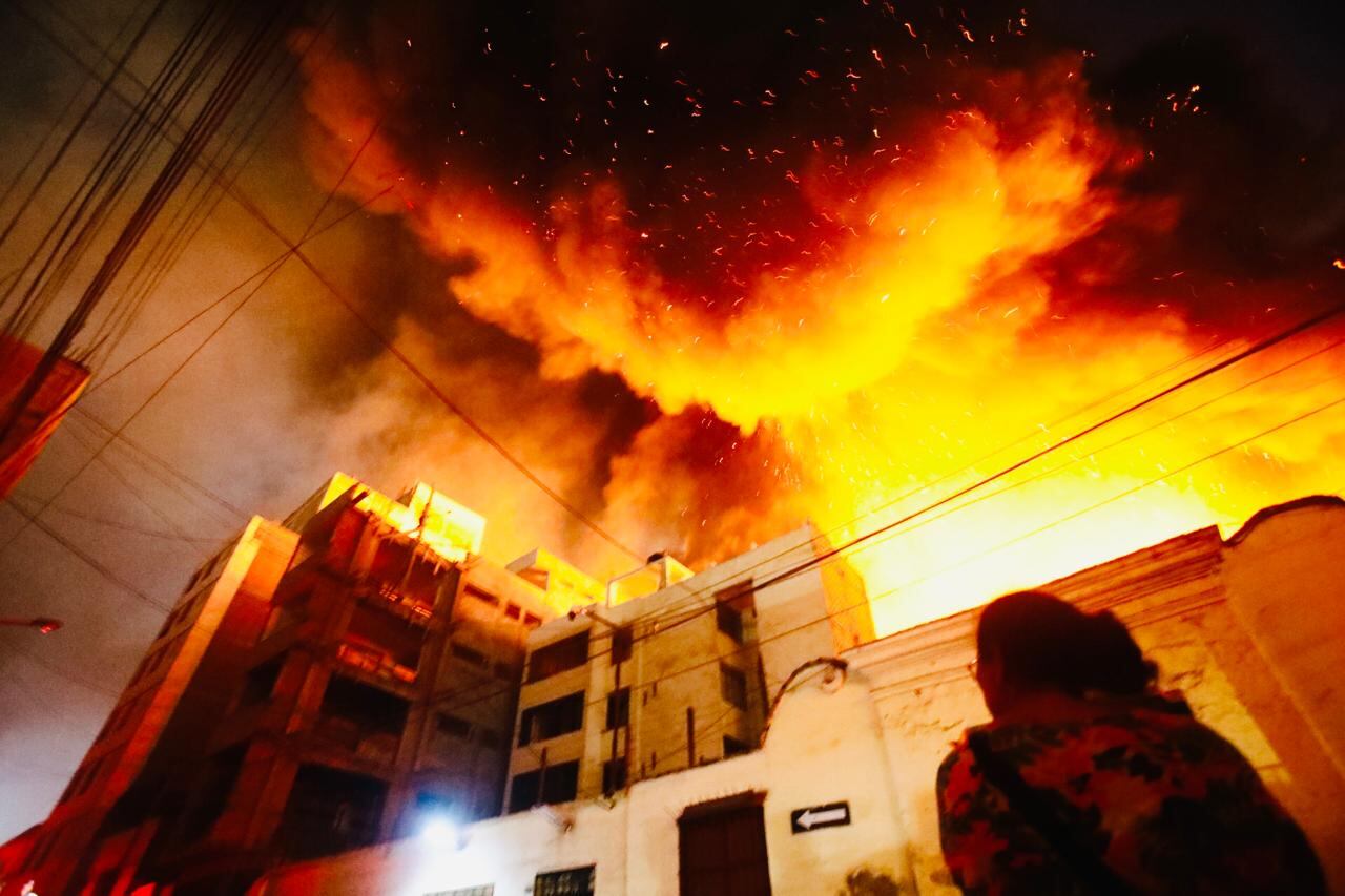 Un incendio descontrolado ha afectado una amplia zona en el Cercado de Lima, específicamente en el jirón Junín, en la zona de Barrios Altos, donde más de 50 unidades del Cuerpo de Bomberos han sido desplegadas para atender la emergencia, que fue declarada el lunes por la tarde.