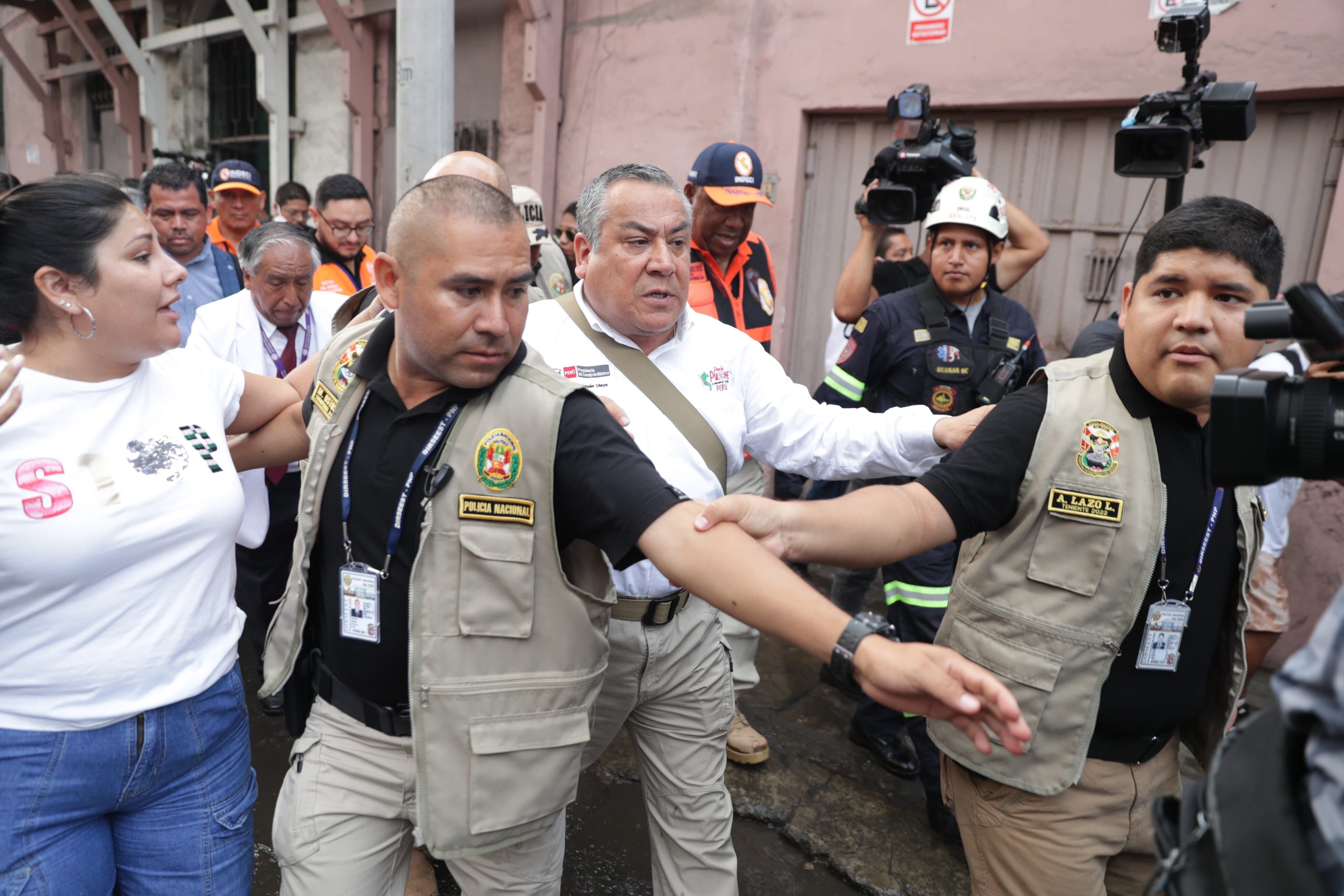El jefe del gabinete Gustavo Adrianzén visitó hoy 4 de marzo en la mañana la zona del incendio de Barrios Altos. Según señaló, coordina con los bomberos y la Policía Nacional acciones adicionales para apoyarlos a controlar la emergencia.