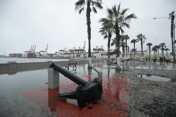 El agua del mar alcanzó la Plaza Grau debido a la fuerza de las olas. Foto: Britanie Arroyo / GEC