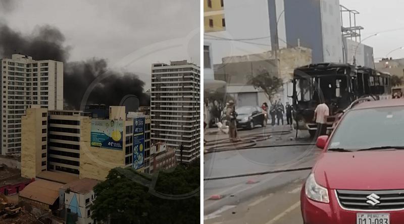 La tarde de este miércoles, un bus de transporte público ardió en llamas en la cuadra 17 de la avenida Petit Thouars, en el distrito de Lince, según informó Canal N.
