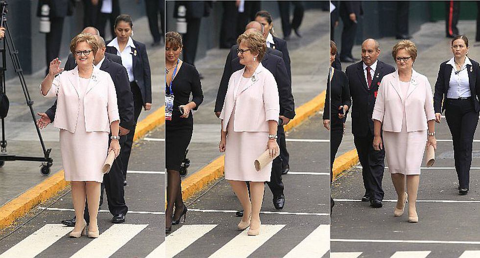Tradicional, sobria y elegante lució la primera dama Nancy Lange en la toma de mando de su esposo Pedro Pablo Kuczynski como presidente del Perú. El impecable look de la prima de la oscarizada actriz Jessica Lange causó revuelo en las redes sociales de Twitter y Facebook.