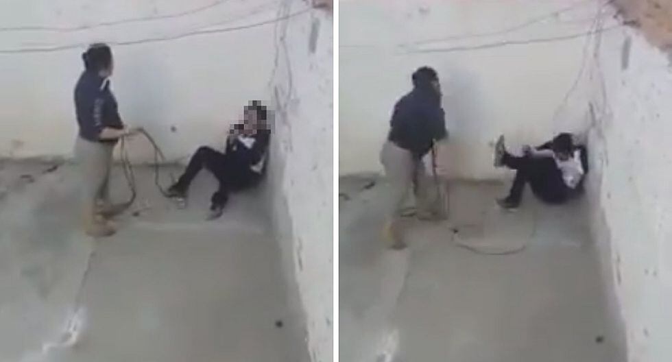 En las imágenes compartidas a través de las redes se aprecia a la mujer cogiendo un cable y pegándole en repetidas oportunidades al joven, quien terminó diciendo: "Perdón por contestarte y ser una malagradecido".