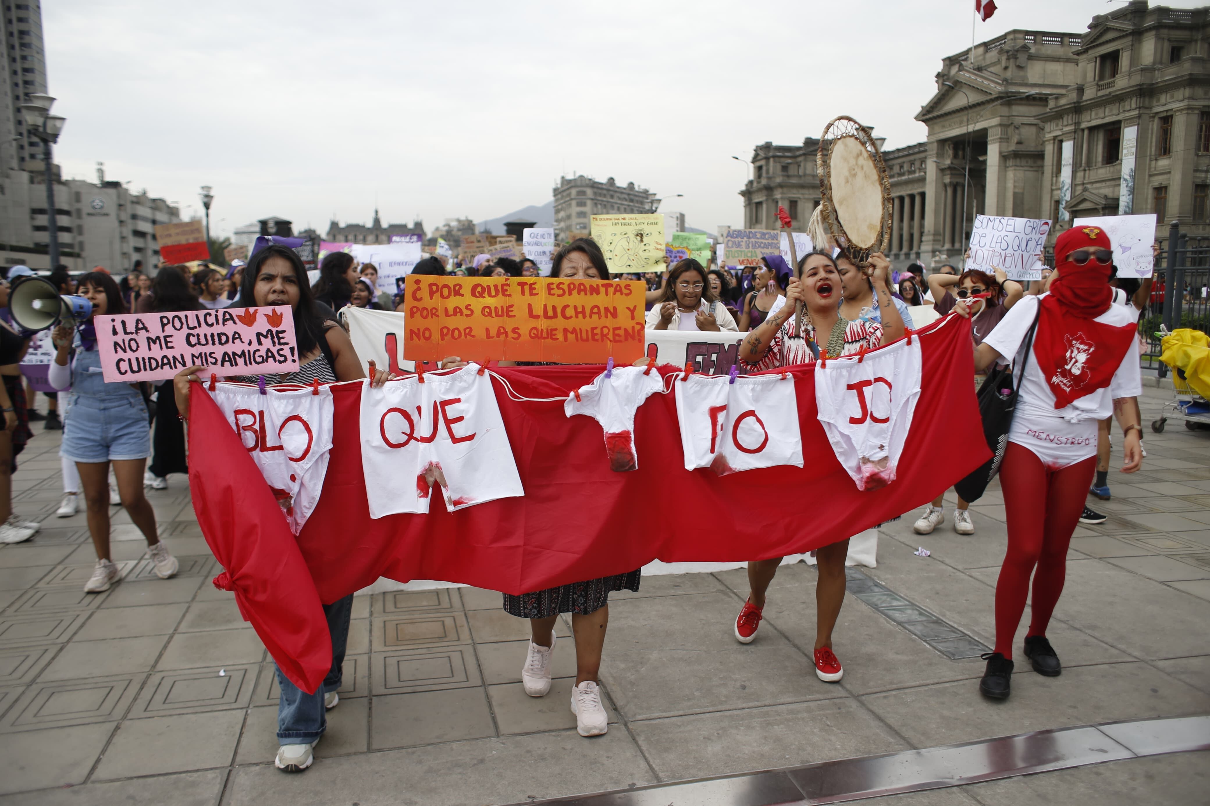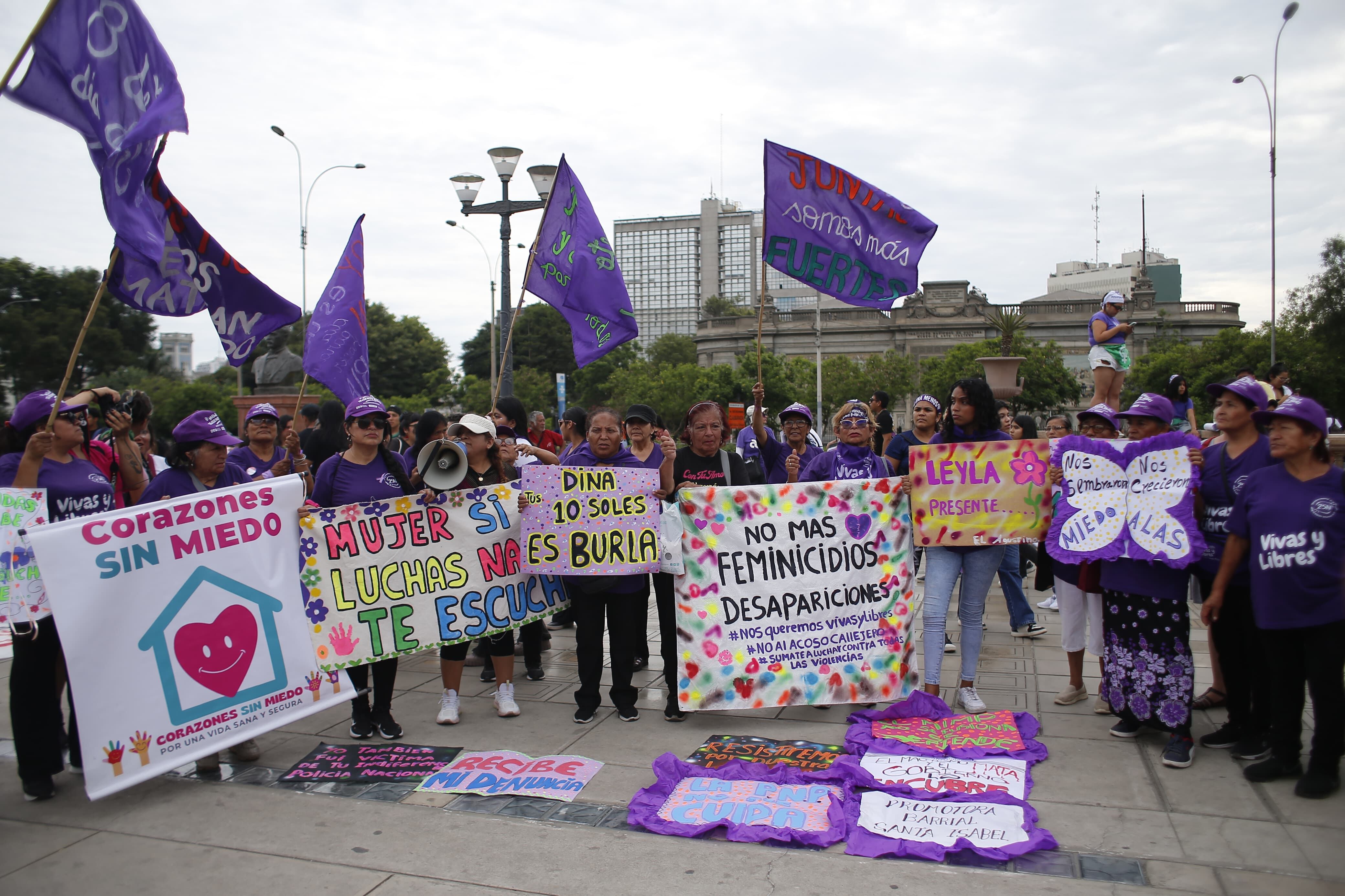 En la Plaza San Martín, algunas manifestantes denunciaron que efectivos policiales intentaron desalojarlas, retirando pancartas y banderas de protesta. Sin embargo, el incidente no escaló y la marcha continuó con normalidad.