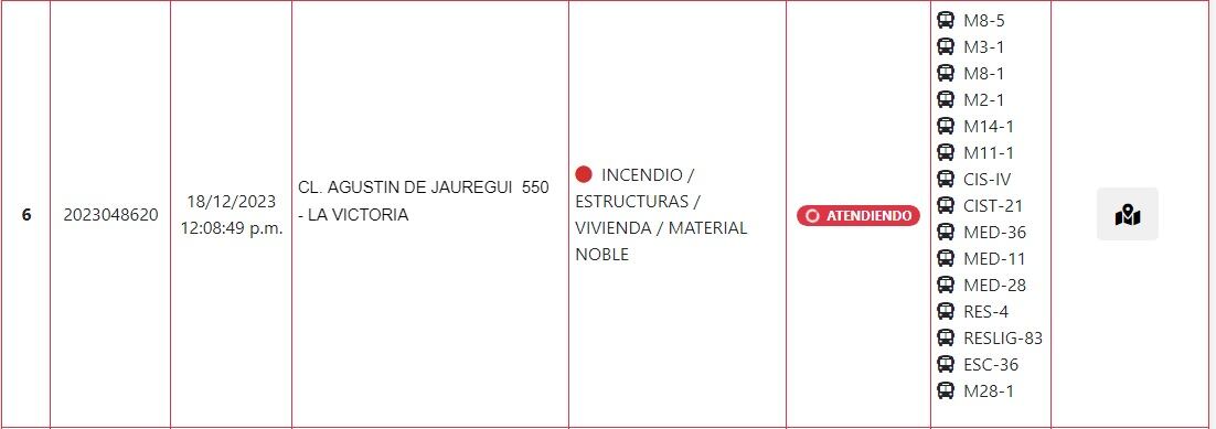 Hasta el momento, al menos 15 unidades del Cuerpo General de Bomberos Voluntarios se desplazaron al sitio para hacer frente a la emergencia y atender si hubiese personas heridas.