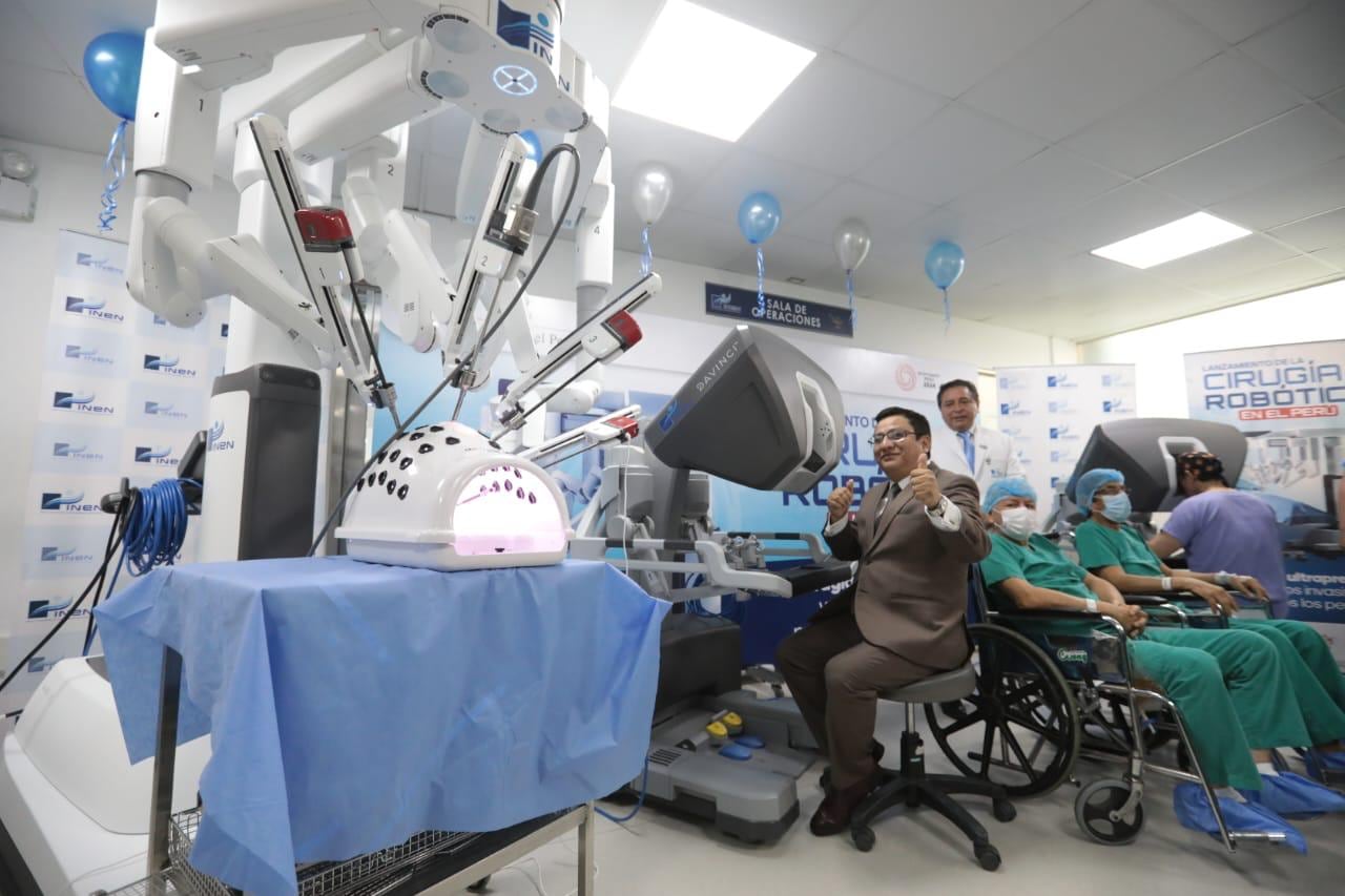 Durante una actividad realizada en el Instituto Nacional de Enfermedades Neoplásicas (INEN), el ministro de Salud, César Vásquez, anunció el inicio de la cirugía robótica en el Perú, donde presentó el caso de éxito de dos personas operadas de cáncer, por los médicos especialistas de esa entidad a través del sistema quirúrgico robótico.