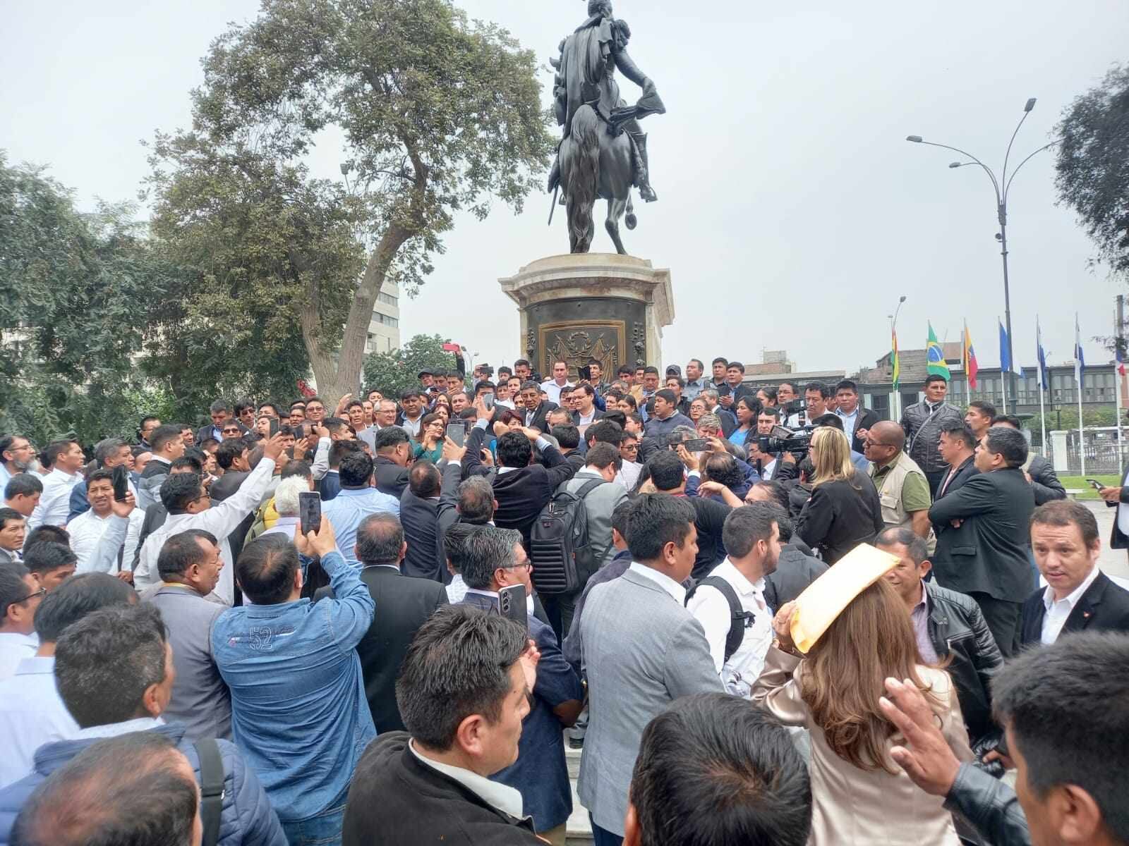 La comitiva de autoridades fue recibida por un grupo de parlamentarios liderado por Waldemar Cerrón, Flor Pablo Medina y Martha Moyano, quienes respaldaron la propuesta de derogatoria. Durante el debate en el Hemiciclo del Congreso, el presidente de la Comisión de Economía, Banca, Finanzas e Inteligencia Financiera, César Revilla Villanueva (FP), subrayó la importancia de derogar esta ley para evitar limitaciones en la ejecución de obras por administración directa a cargo de los gobiernos regionales y locales.