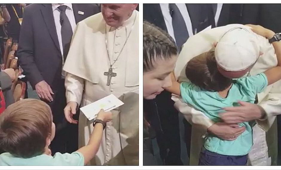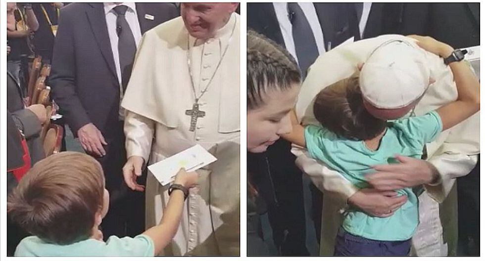 Niñito chileno recibe autógrafo del papa Francisco y hasta lo abrazó (VIDEO)