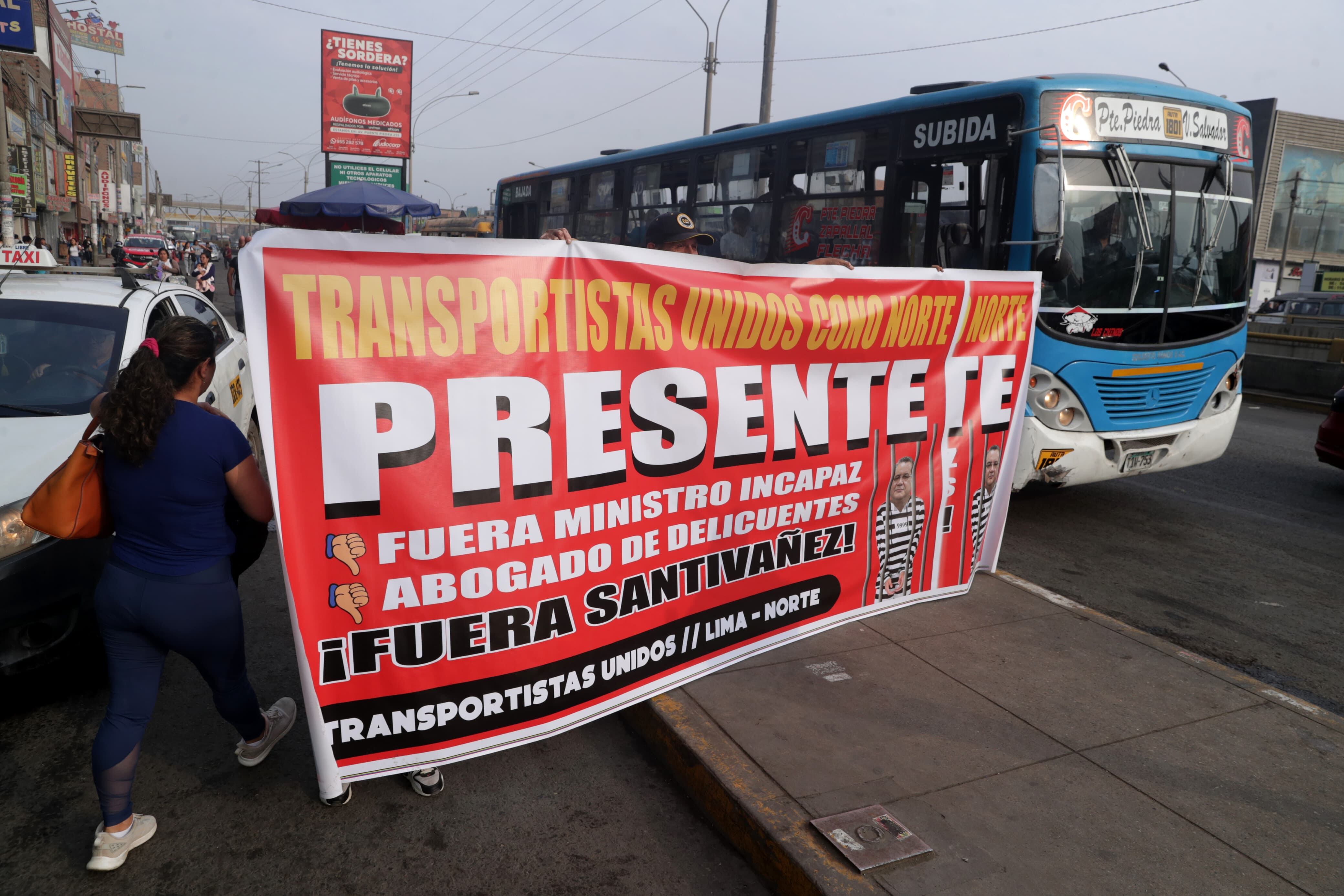 En la Panamericana Norte, grupos de manifestantes intentaron llegar al centro de Lima para exigir mano dura contra los delincuentes que extorsionan a los transportistas.