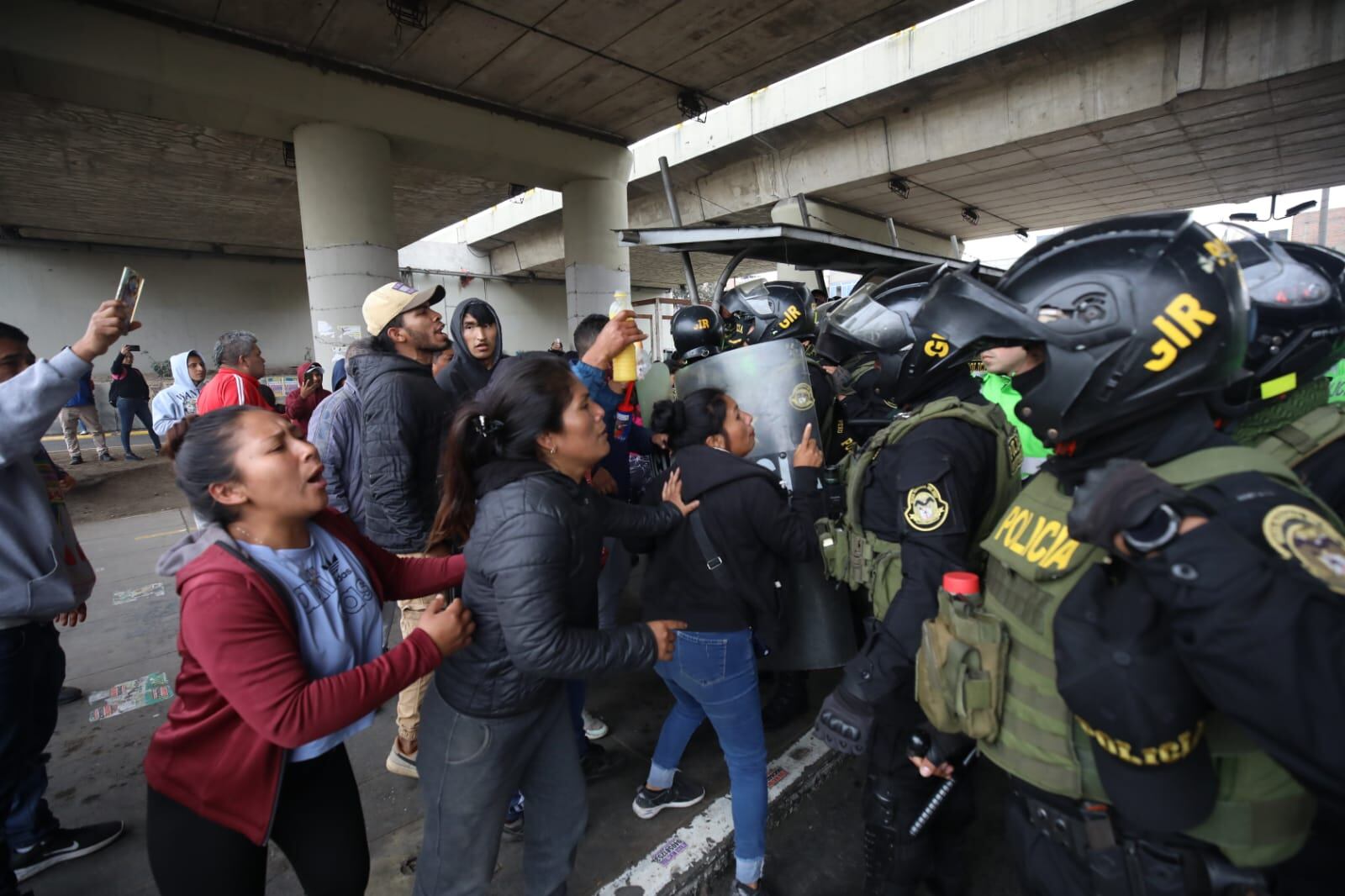 El paro también dejó escenas de violencia. En Los Olivos, manifestantes intentaron frenar el tránsito en el cruce de las avenidas Carlos Izaguirre y Alfredo Mendiola, para obligar a los buses a dejar de operar, lo que derivó en un enfrentamiento con la Policía Nacional.