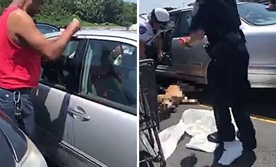 La policía no tardó en llegar y tras forzar la puerta del auto, terminaron rompiendo la ventana para salvar al animal que aún respiraba.