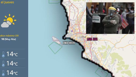 Nelson Quispe, experto del Senamhi, explicó que la humedad ya supera el 90 % en la capital y que la temperatura mínima en la zona oeste (cercana al mar) es 16 grados; mientras que en el este (Chosica, por ejemplo) la mínima ha sido 14 grados.