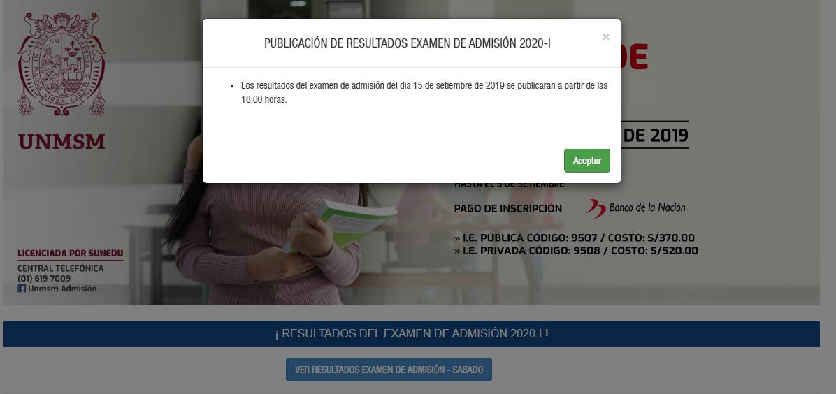 Los resultados del examen de admisión 2020-I de San Marcos del domingo 15 de septiembre estarán publicados desde las 6 pm en la página de la Oficina Central de Admisión (OCA) de la Universidad. MIRA AQUÍ la lista de postulantes que lograron ingresar.