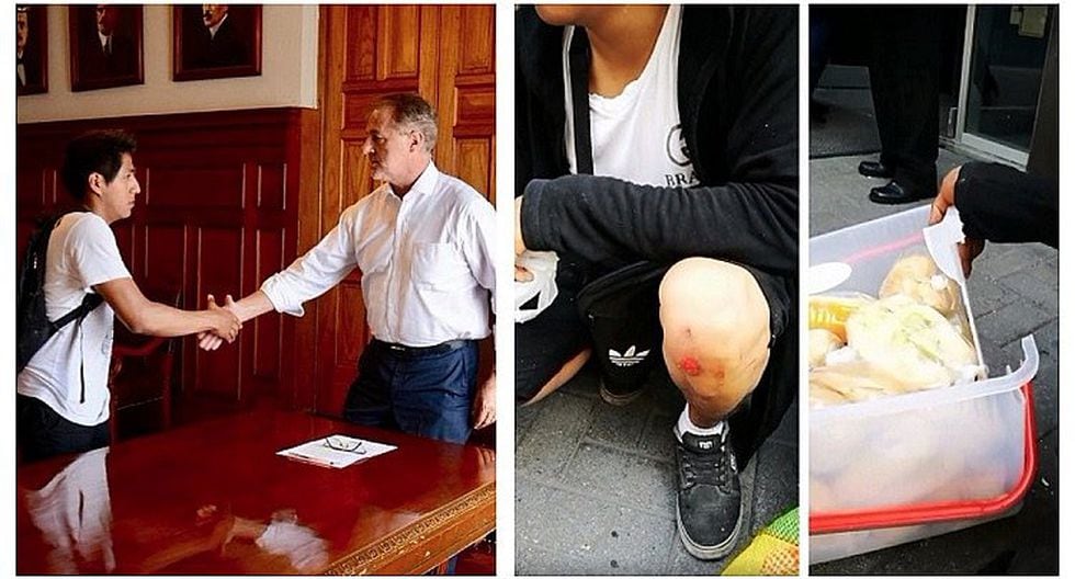 Jorge Muñoz le pidió disculpas al joven ambulante quien terminó con las piernas y brazos heridos. Su canasta de panes y mochila con la que se iba a estudiar también resultaron rotas.