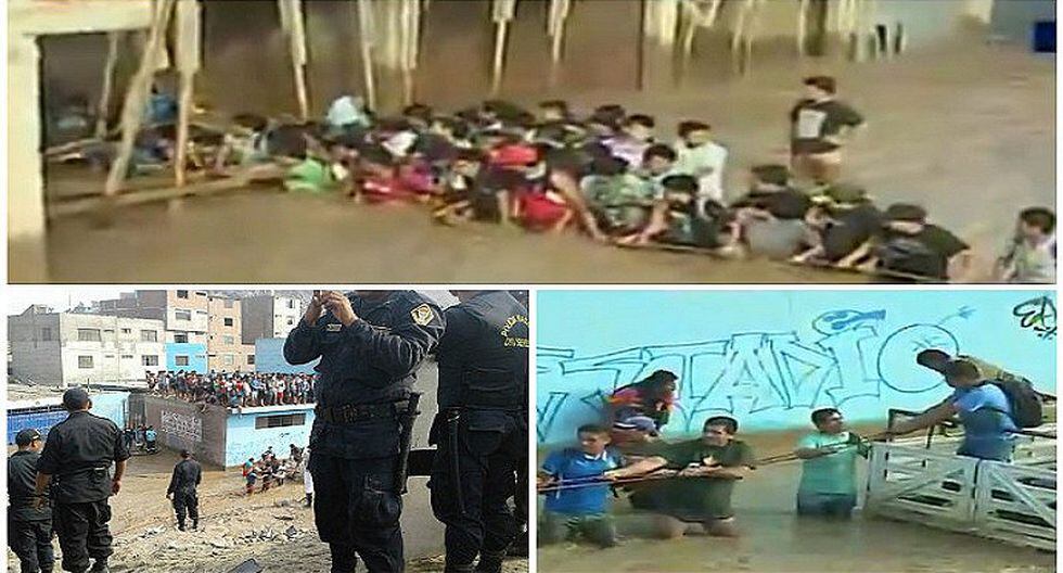 Hasta Huachipa, agentes de la Policía Nacional llegaron para rescatar a pobladores que habían quedado aislados por el desborde del río Rímac, sin embargo la desesperación de algunos hizo que terminen realizando una impresionante cadena humana.