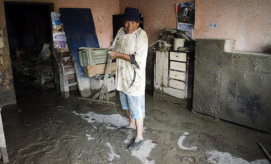 Recuperación. A pesar de su avanzada edad y los estragos de una operación a la que fue sometido, don Felipe se levanta todos los días a las 6.00 de la mañana para retirar el barro y desmonte que invadió su vivienda, ubicada en la avenida Olivar 150, y provocó que lo perdiera casi todo. Solo su esposa, doña Judith Cristóbal Robles, le da fuerzas para continuar recordándole que “lo importante es que están con vida”.