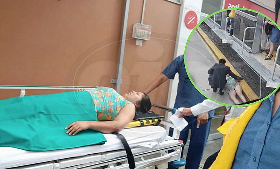 La mujer terminó cayendo a la vía y un usuario logró registrar imágenes de ella echada en el suelo, siendo atendida por el personal del Metropolitano.