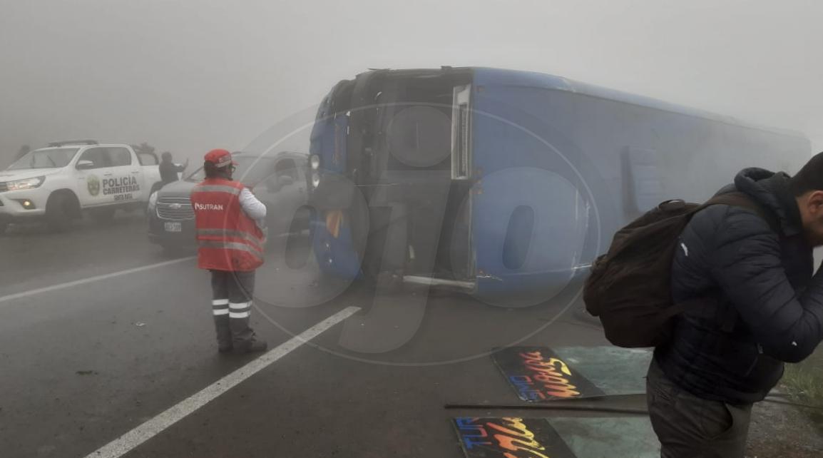 Un ómnibus interprovincial se volcó y fue necesario la presencia de al menos seis unidades del Cuerpo General de Bomberos Voluntarios del Perú (CGBVP) para atender la emergencia.