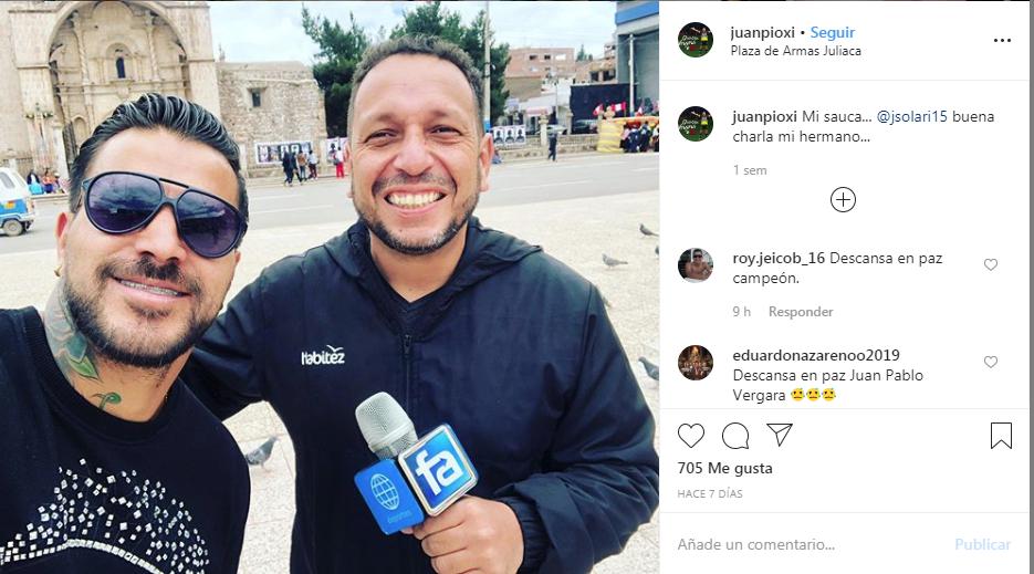 “La semana pasada, antes de dejar Juliaca, llamé a Juan Pablo Vergara y le pedí hacer una nota, me dio el número de Rodriguez y Tello porque él vivía en Puno, pero a la hora me llamó y me dijo ‘chato yo voy porque Aldahir es un dormilón y te va a fallar’ (...) Aldahir no llegó y él viajó de Puno a Juliaca para ayudarme con la entrevista, Tello si apareció y luego de la nota nos tomamos esta foto... Siempre risueño me dijo al final: ‘mi hermano, yo sé que te gustan las apuestas, métele a Binacional, te vamos a hacer ganar’”, escribió el periodista en Twitter.