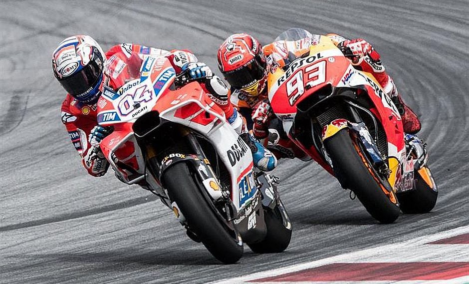 Con una pasada espectacular en los últimos metros, el italiano Andrea Dovizioso (Ducati) conquistó este domingo el Gran Premio de Austria en categoría MotoGP, por delante del líder del Mundial, el español Marc Márquez (Honda), situándose segundo en la general del Mundial de MotoGP.