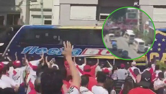 El incidente ocurrió cuando el bus, escoltado por la Policía, se desplazaba por Avenida Del Libertador, pero en la intersección con Monroe, varios hinchas los esperaban.