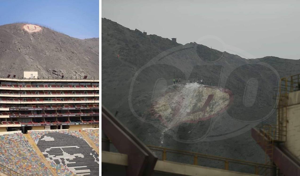 Uno de las grandes muestras de que estás llegando al estadio Monumental, sede de la final de la Copa Libertadores, es el enorme escudo de Universitario de Deportes pintado en lo alto del cerro Puruchuco. Pues ese emblema amaneció dañado y polo legible.