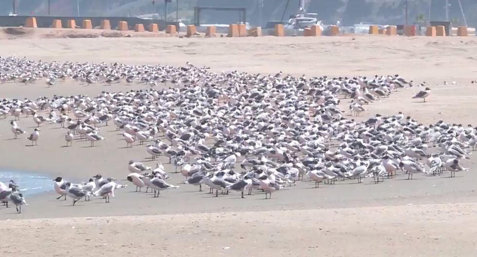 Esta escena se ha visto en playas limeñas como Punta Hermosa y Agua Dulce. La falta de bañistas ha hecho que las aves vuelvan a posarse sobre la arena.