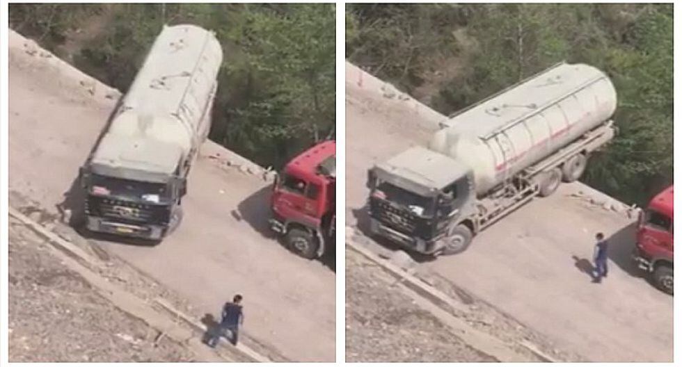 El conductor estuvo a punto de desbarrancarse cuando intentaba enterezarse. Por el poco espacio, el hombre tuvo que "jugarsela" para evitar un terrible accidente.