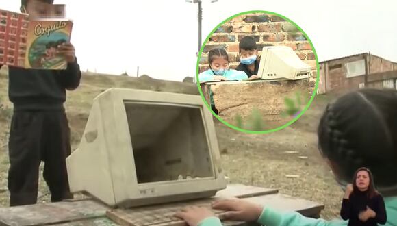 A diferencia de sus amigos, estos dos primitos hacen sus tareas por medio de WhatsApp en los celulares de sus papás, pero sueñan con un computador como el encontrado.