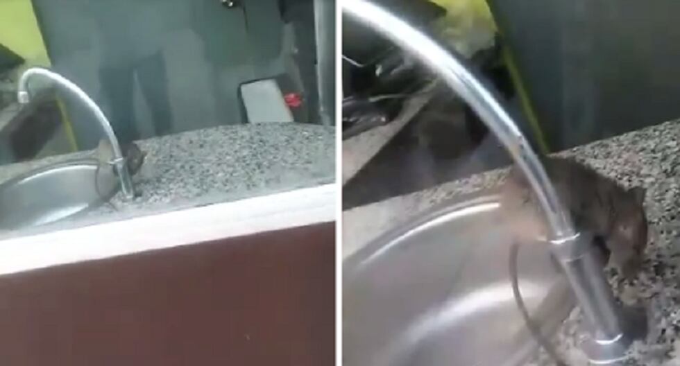 Como se puede ver en las imágenes, la rata se encuentra ubicada cerca al lavamanos del restaurante y aunque le pegan al vidrio para que se mueva, esta no lo hace.