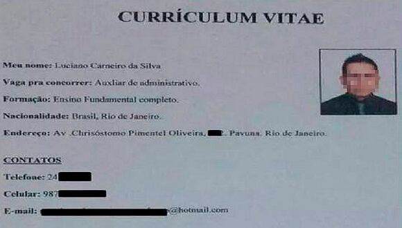 Se trata del CV de Luciano Carneiro da Silva, un muchacho que reside en  Río de Janeiro, en Brasil.