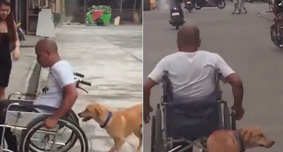 El conmovedor video de un fiel perrito ayudando a su dueño en silla de ruedas (VIDEO)