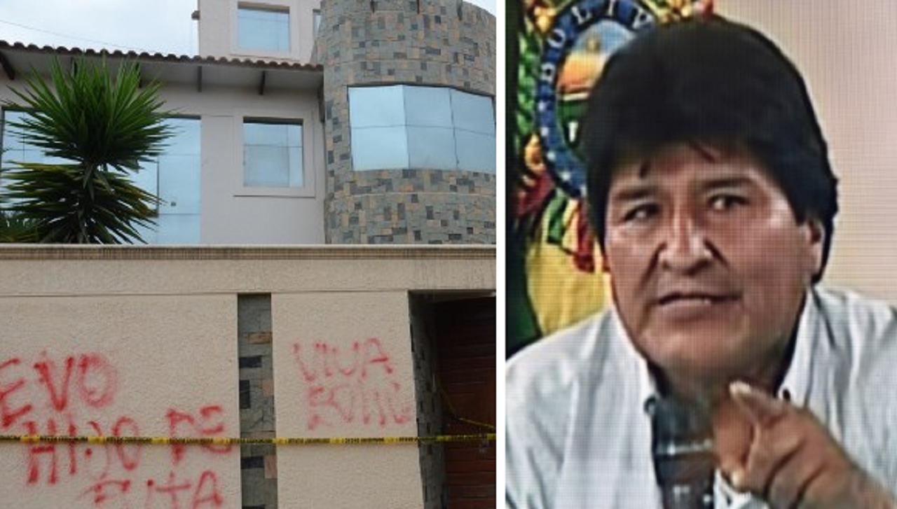 La casa del renunciante presidente de Bolivia, Evo Morales, sufrió destrozos, saqueos y pintas por parte de un grupo de vándalos, en Cochabamba. Gracias a la intervención de los vecinos, se evitó que la turba le prenda fuego al inmueble por temor a que las llamas se extiendan a sus viviendas.