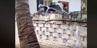 - Perro trepó una palmera y presenció la tremenda pelea de sus vecinos