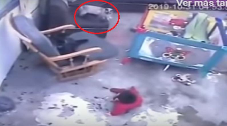 En las imágenes se puede ver a un niño de unos dos años gateando, sin embargo, poco a poco empieza a acercarse a las escaleras de su casa, poniendo en peligro su vida.