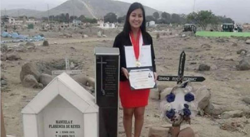 La página de Facebook, Etiqueta.pe, compartió la fotografía de la jovencita indicando que tras obtener su título, fue hasta la tumba de sus padres para celebrar junto a ellos.