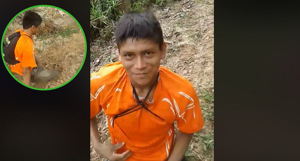 El joven camina por la localidad de Tiahuanaski en Ucayali sobre una trocha difícil de caminar. Él lo hace con sus brazos ya que no tiene piernas.