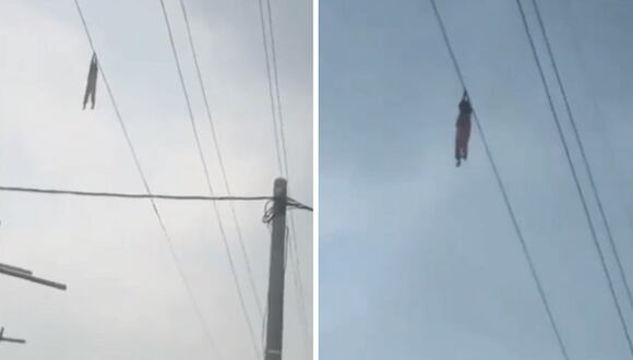 El video de una niña se ha viralizado en las redes sociales luego de que quedara colgada en un cable eléctrico a 15 metros sobre el piso.