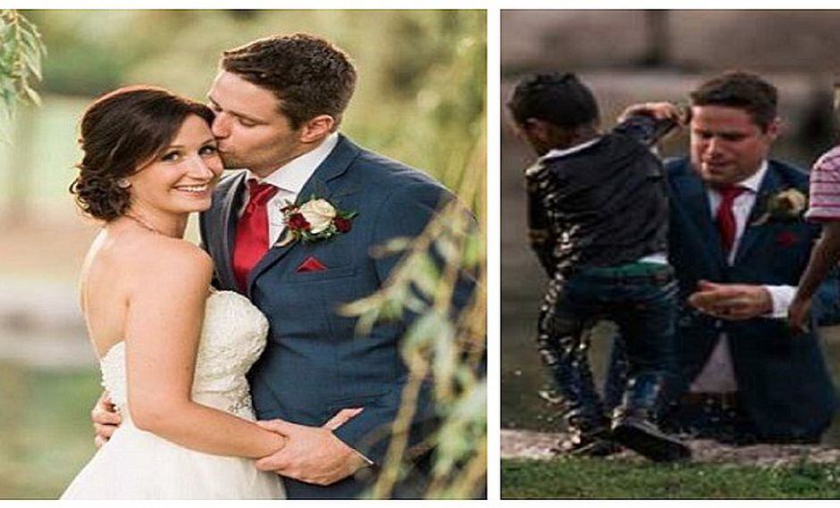 De acuerdo a la novia, tres niños jugaban en la orilla, cuando de pronto uno de ellos cayó. "Afortunadamente, era un niño pequeño y lo saqué sin problemas", añadió el novio.