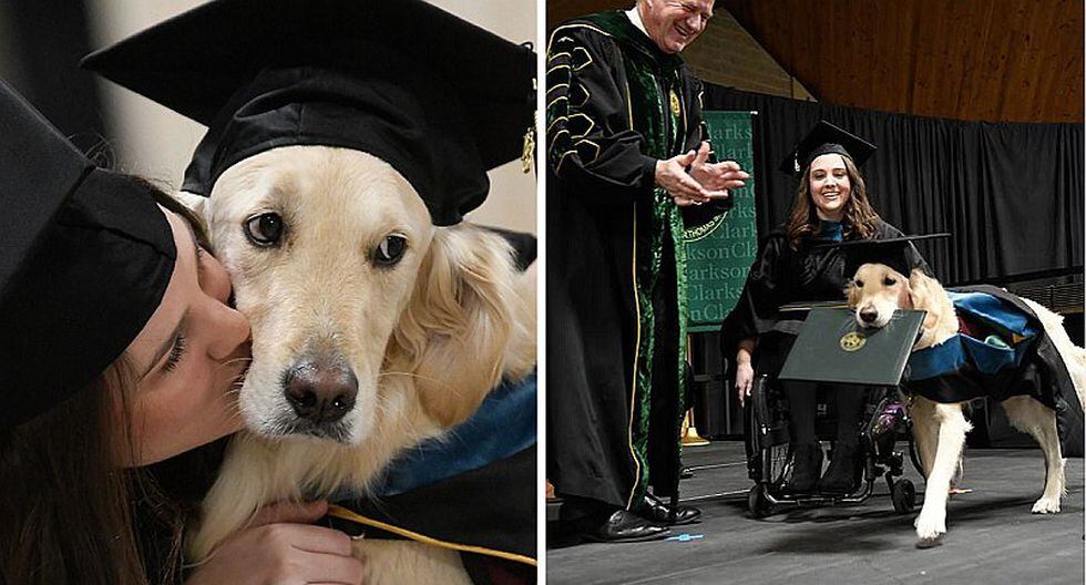 Un perrito de nombre Griffin y quien acompañó todos los días a una estudiante en sillas de rueda a sus clases, se "graduó" en la Universidad de Clarkson en Nueva York.