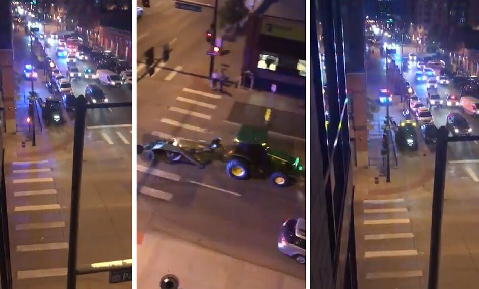 Emprendieron una persecución masiva que duró un aproximado de 30 minutos, solo para detener a un hombre y su tractor robado.