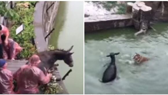El burro fue llevado hasta este lugar por un grupo de hombres quienes sujetaron al asno e hicieron que caiga en un estanque. Luego de ello, lo que se ve en el video es simplemente desgarrador y hasta indignante.