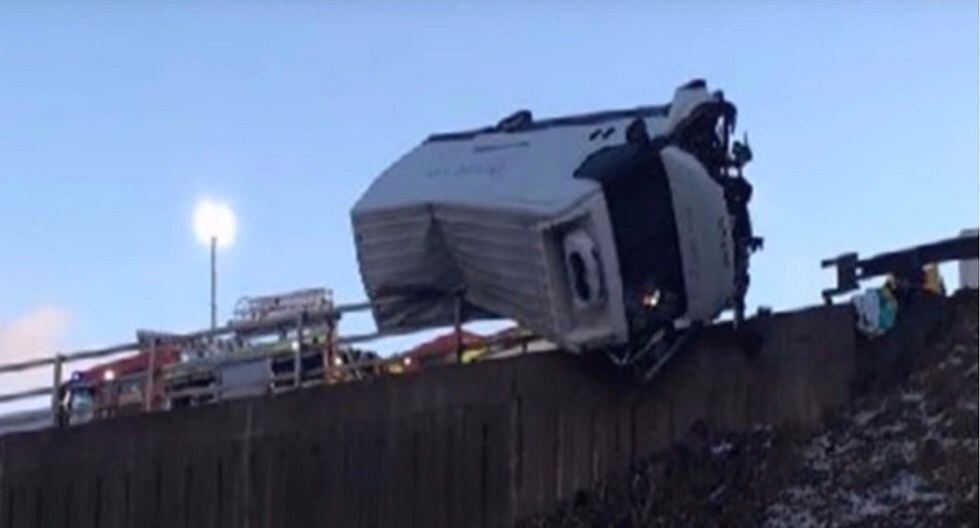 El policía de tránsito Martin Willis llegó el viernes por la mañana a auxiliar un camión accidentado en Yorkshire del Oeste, Inglaterra. El vehículo se meció durante 15 minutos en los bordes de un puente con su conductor dentro. En tanto, el agente de seguridad se aprestaba a realizar denodados esfuerzos a fin de evitar que el vehículo cayera sujetándose de una de sus ruedas.