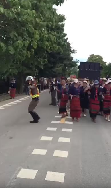 Un policía de tránsito sorprendió en un desfile en Tailandia al contagiarse de la alegría de los participantes y trabajar a ritmo de la música.